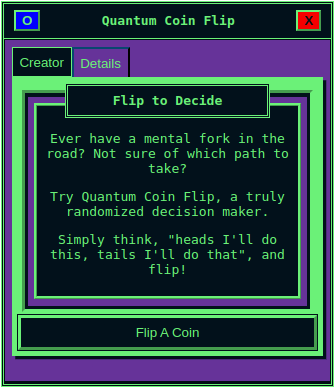 Something needed to be done, which became Quantum Coin Flip. It does use quantum mechanics and does provide a true 50/50 choice.
